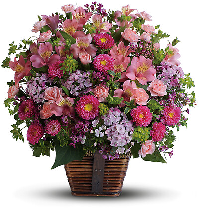 Send someone this delightful floral gift of pretty pink blossoms and share the gift of beauty! A glorious selection of fresh flowers is arranged in a rustic basket, then hand-delivered. What could be lovelier?